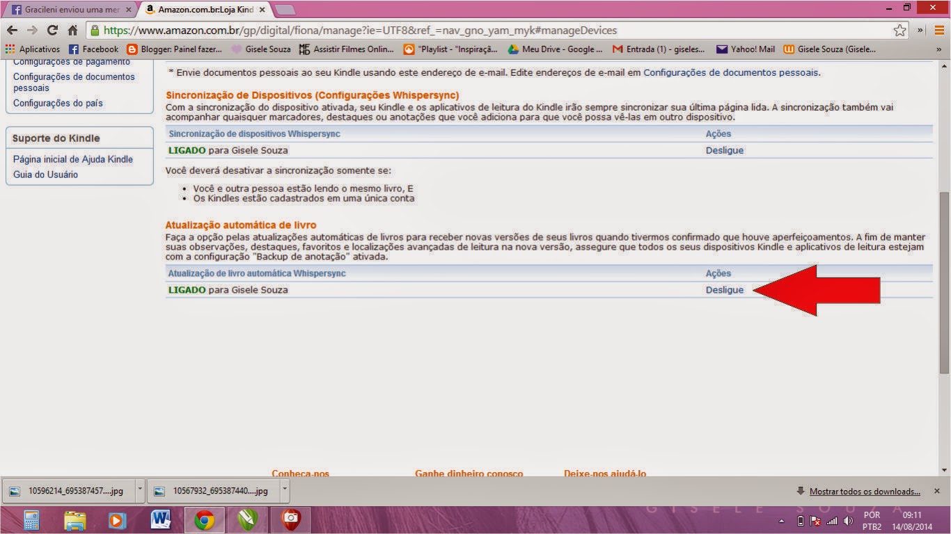 Desça a barra de rolagem e procure a opção ATUALIZAÇÃO DE LIVRO AUTOMÁTICA vai estar selecionado desligado, você clica onde a imagem abaixo indica e seleciona o LIGADO para que receba todas as atualizações nos livros que adquiriu.