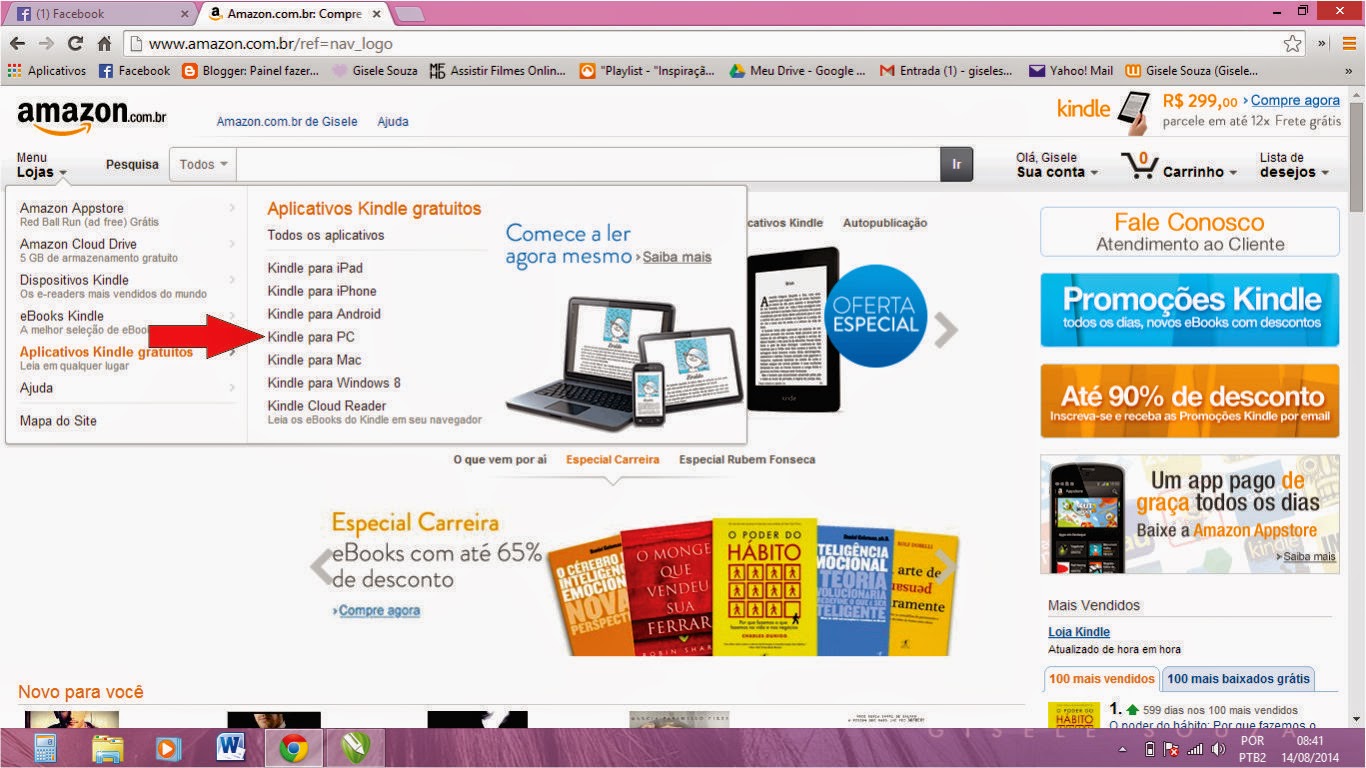 Eu optei por demonstrar o KINDLE PARA PC.