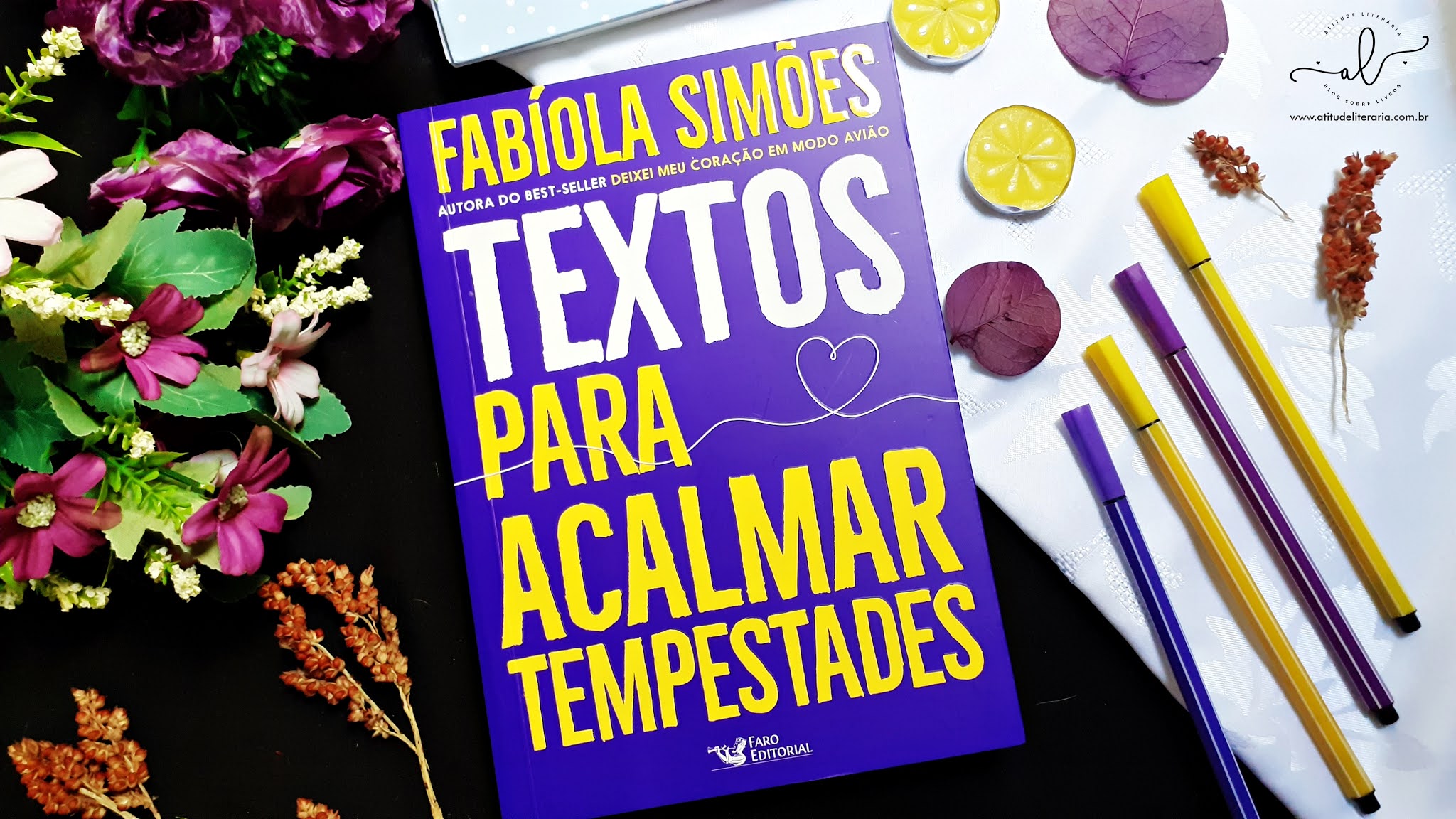 Sinopse: “E de repente, num dia qualquer, acordamos e percebemos que já podemos lidar com aquilo que julgávamos maior que nós mesmos. Não foram os abismos que diminuíram, mas nós que crescemos…” Textos para acalmar tempestades é um livro sobre busca, encontro, perda e renascimento. Recorrendo a citações de grandes nomes da literatura mundial, Fabíola Simões propõe uma jornada de autoconhecimento e aprofundamento no mistério da própria vida, em textos e poemas leves e, ao mesmo tempo, profundos. Partindo de máximas ou trechos de autores como Charles Dickens, Clarice Lispector, Joseph Campbell, Hermann Hesse, Isabel Allende… a autora constrói uma narrativa sensível e dinâmica, que tem conquistado milhares de leitores.