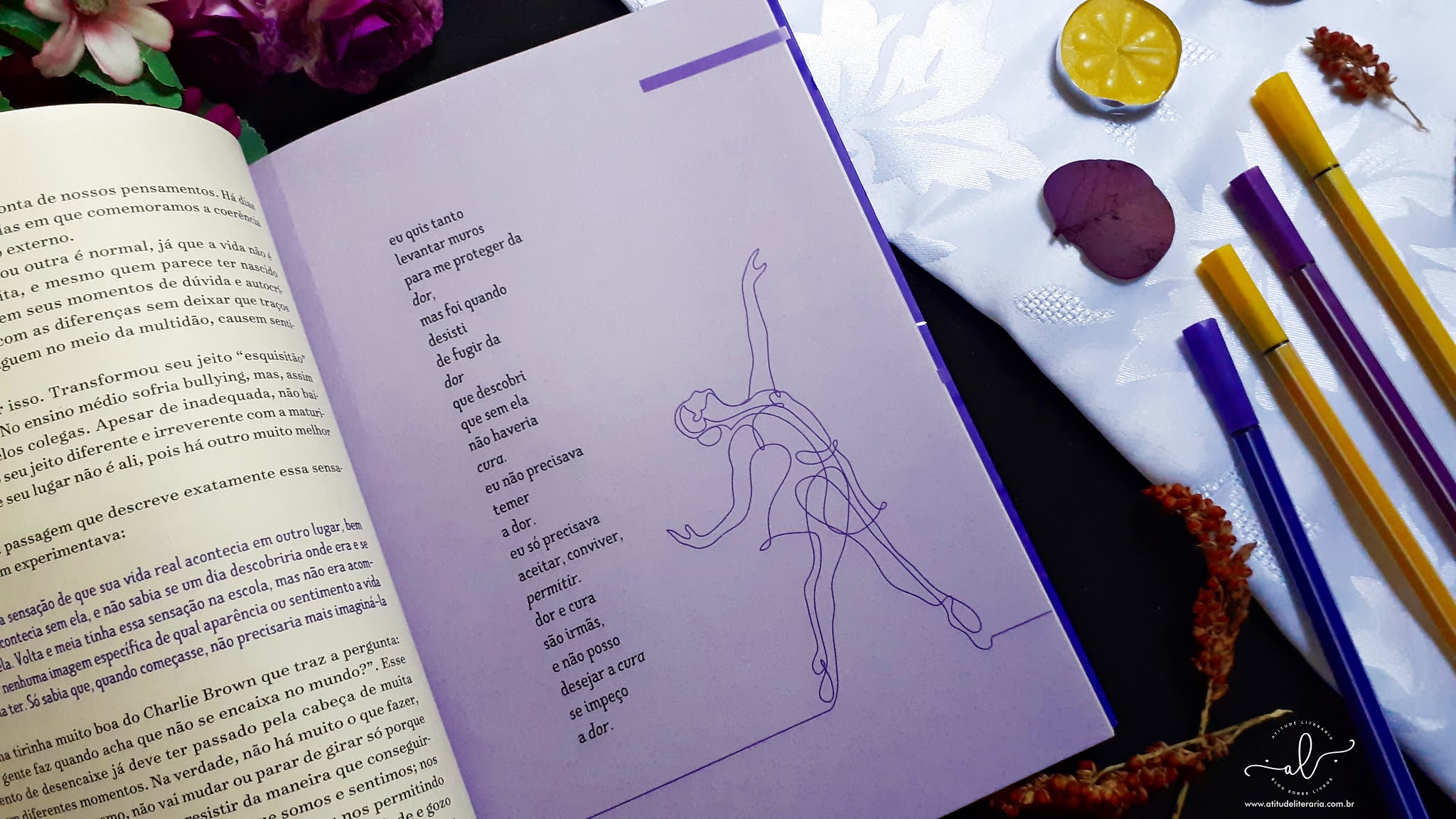 Eu gostei muito desta leitura, mas preciso frisar que é o tipo de livro que para mim só funciona se lido em doses homeopáticas, eu preciso ir lendo aos poucos, um texto por vez, às vezes os alternando, porque se não acabo ficando com a sensação de cansaço e este livro não é nem de perto isso. Mas esse é um ponto particular do meu EU leitora. Outro ponto que quero comentar, é que amei o tom de “amizade” de conversa que o livro oferece, em determinados momento pareceu que estava trocando experiências com alguma amiga, que estávamos derramando nossas frustrações, assim como nossas alegrias e isso foi muito legal, a autora oferece esse tom mais intimista, acolhedor, porque é palpável, que tem muito dela em cada reflexão. E por fim, ainda preciso falar das muitas referencias que tornam a obra riquíssima, são dicas de leituras, músicas, textos, arte que a própria autora consumiu enquanto escrevia, e que com maestria compartilhou conosco.