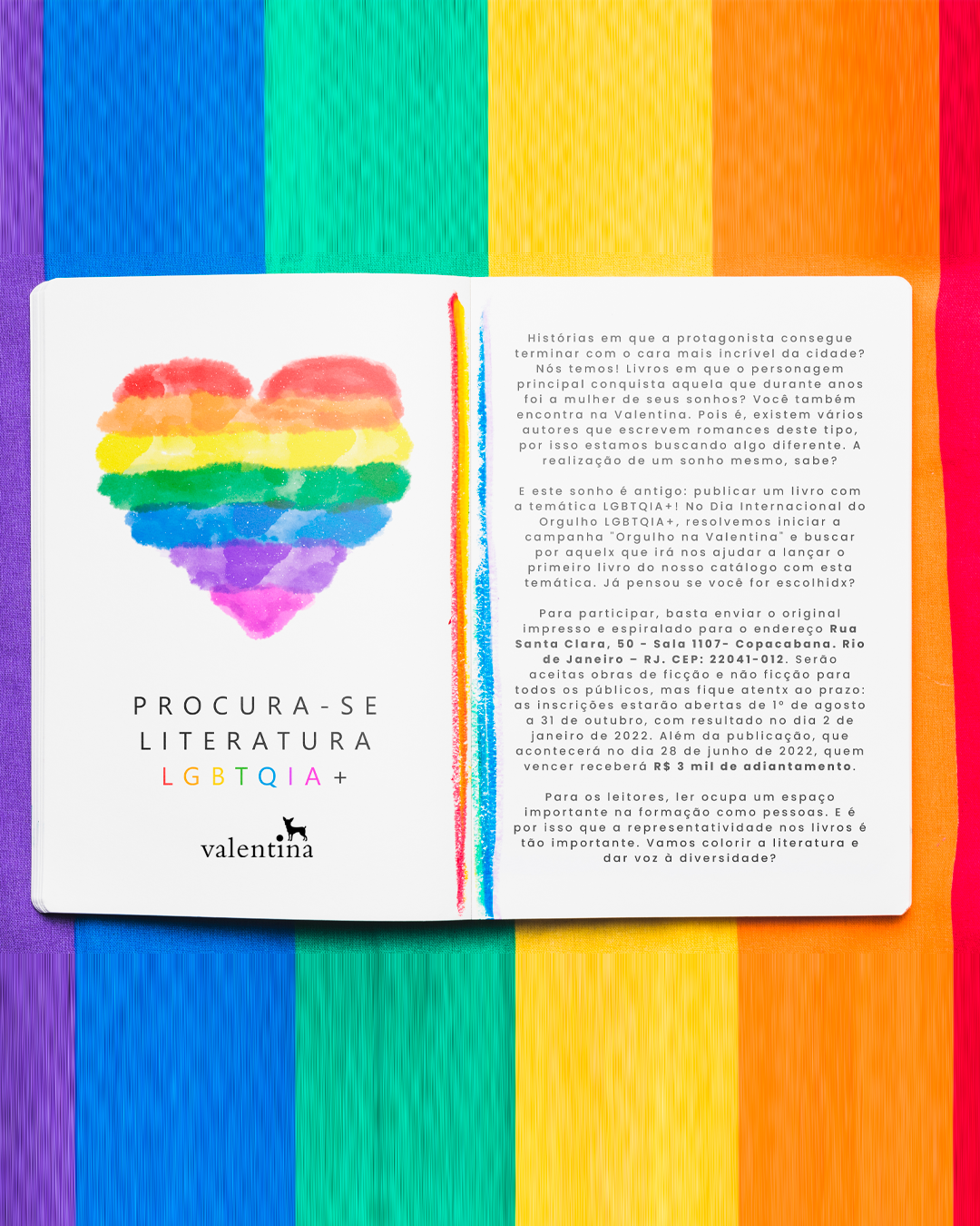 E este sonho é antigo: publicar um livro com a temática LGBTQIA+! No Dia Internacional do Orgulho LGBTQIA+, resolvemos iniciar a campanha “Orgulho na Valentina” e buscar por aquelx que irá nos ajudar a lançar o primeiro livro do nosso catálogo com esta temática. Já pensou se você for o escolhidx?